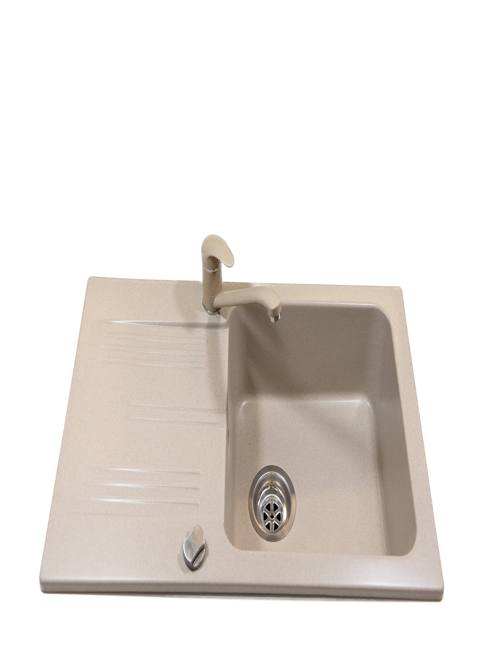 Set Chiuvetă Rock cu 1 Cuva și 1 Picurător, Baterie Inclusă – Material Compozit, Culoare Bej/Negru Mat: Complet și Elegant!